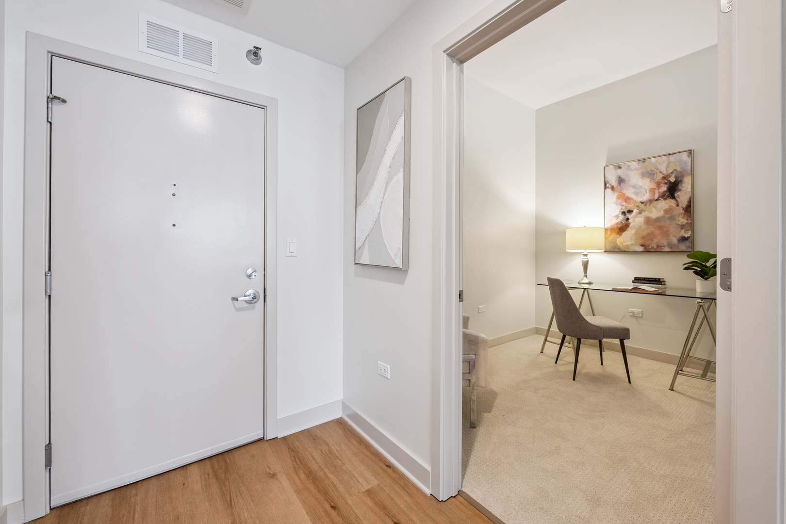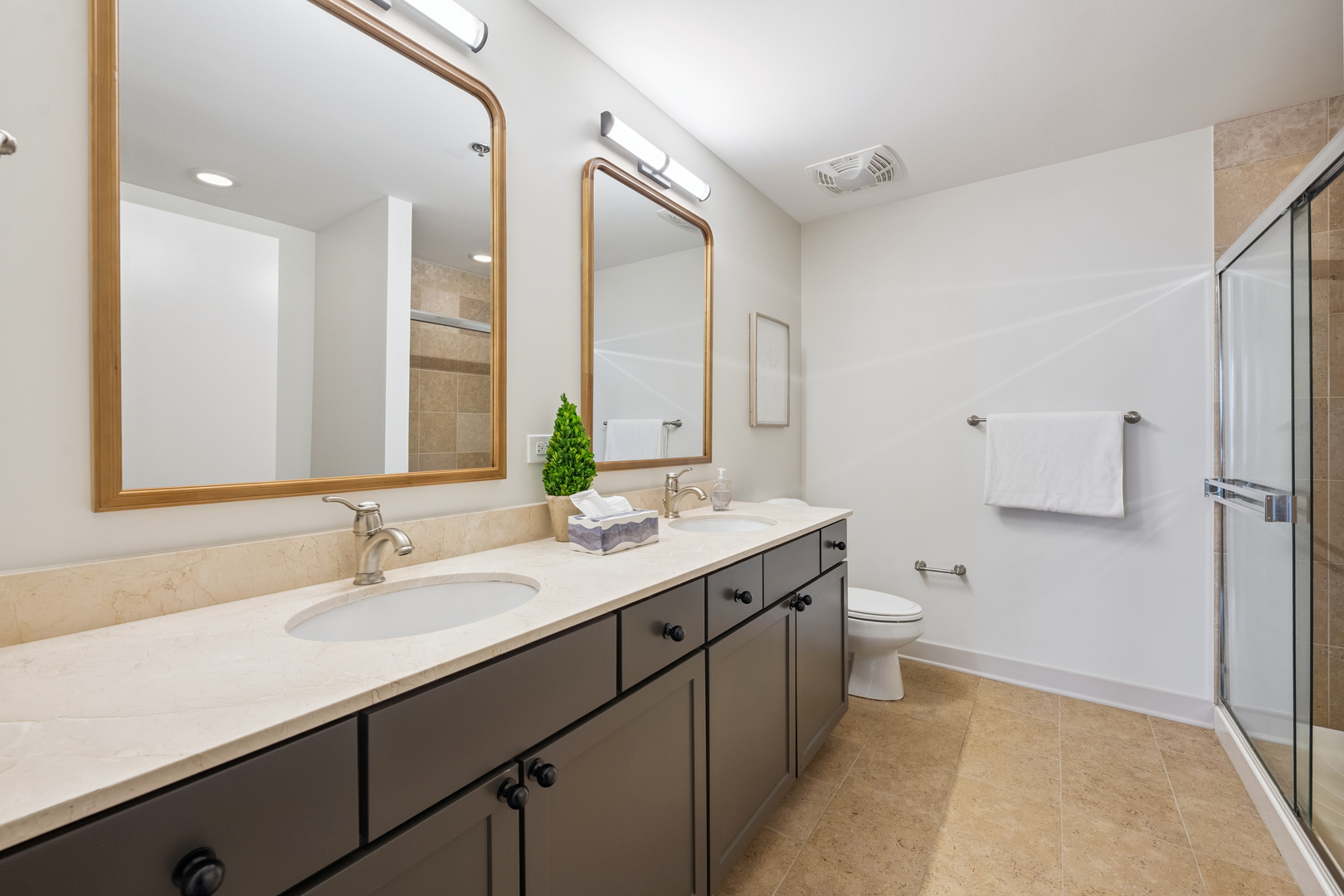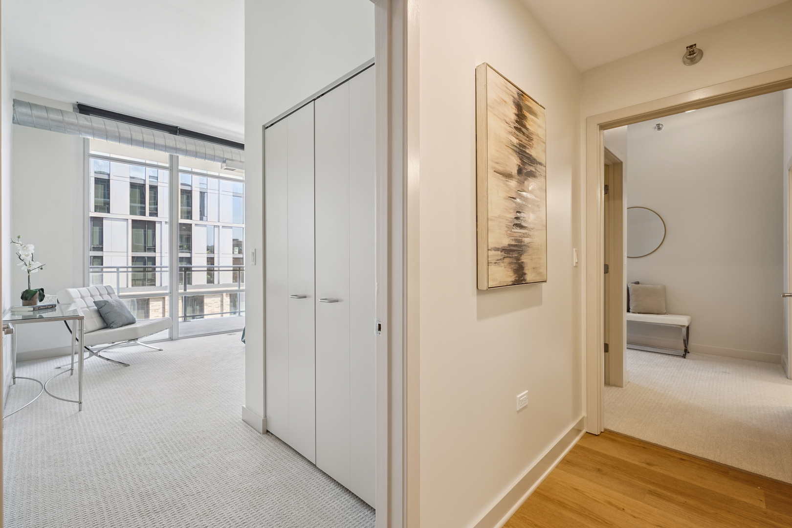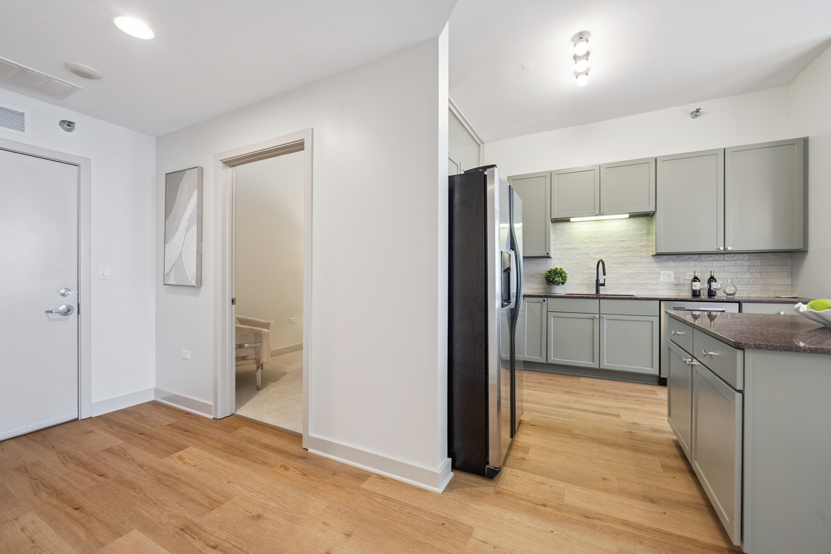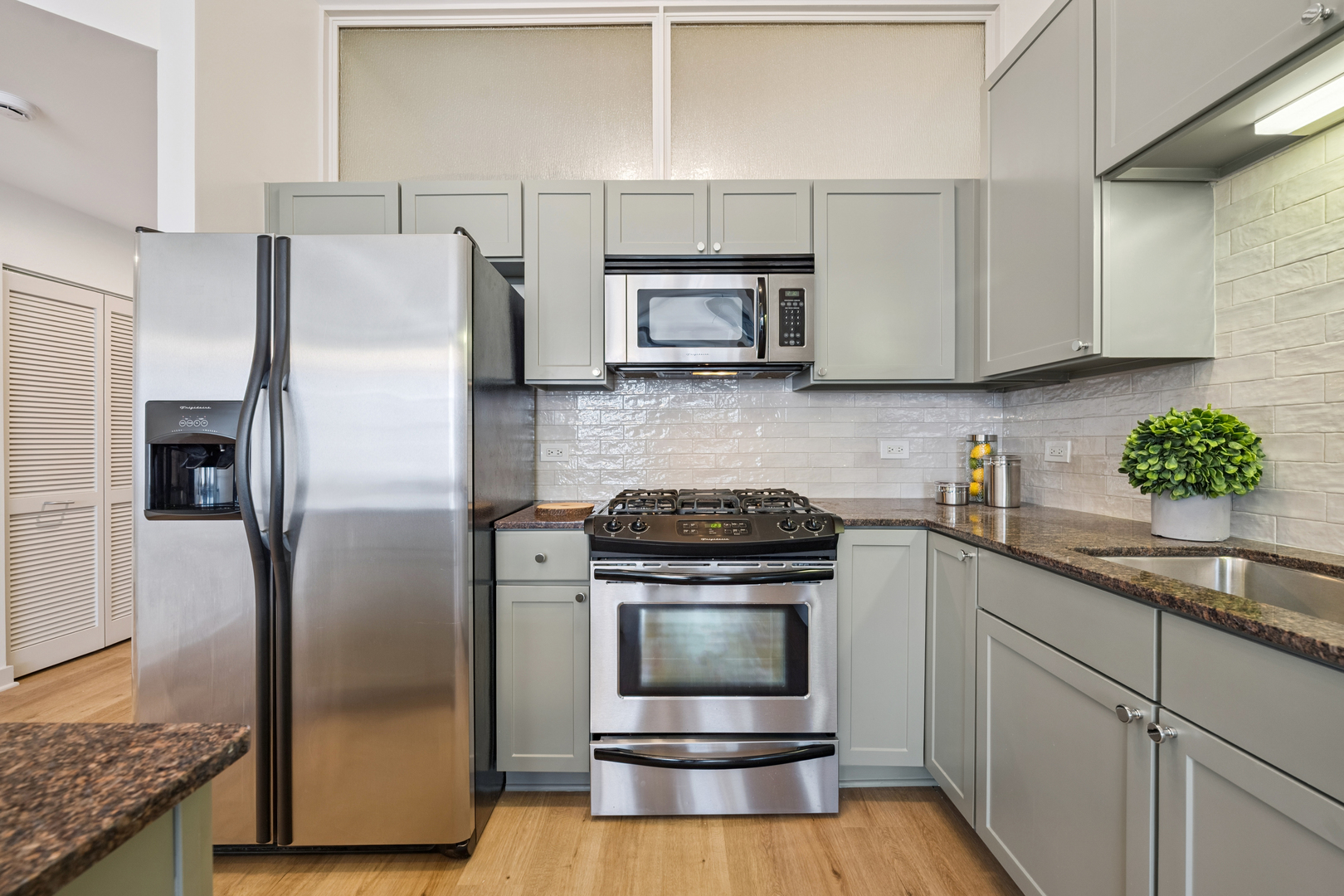 Experience breathtaking East skyline views from this highly desirable 2 Bed / 2 Bath + DEN, offering 1,430 sq. ft. of sophisticated city living in one of Chicago's most sought-after neighborhoods. Start your day with coffee or unwind in the evening on your private balcony, taking in the city lights. Recently refreshed, this home features brand new flooring in the main living areas, new carpet in both bedrooms, and fresh paint throughout. The kitchen has been updated with sanded and painted cabinets and a stylish new backsplash, adding a modern touch to the open-concept design. Floor-to-ceiling windows flood the space with natural light, complemented by granite countertops and 42" cabinetry. The versatile den offers the perfect spot for a home office, workout space, or creative studio. The spacious main bedroom easily accommodates a king bed, includes a walk-in closet, and features a spa-inspired bath. The building's upscale amenities include a state-of-the-art fitness center, party room, sun/roof deck, bike room, and attentive front door staff. Residents also enjoy a beautifully landscaped 4th-floor terrace with outdoor seating, grilling stations, and a dog run. Step outside and immerse yourself in all that the West Loop has to offer - from world-class dining along Restaurant Row to boutique shopping, trendy coffee houses, art galleries, and nightlife. Enjoy a proximity to Bartelme Park, SOHO House, Whole Foods, Randolph Street Market, the Fulton Market District, and nearby CTA and expressways for a quick commute, Union Station and Ogilvie Transportation Center, Located in the esteemed Skinner School District, this property offers access to one of Chicago's top-rated public schools, providing added value for families and potential long-term investment opportunities. The unit features a storage locker, and deeded garage parking is available for an additional $30,000.